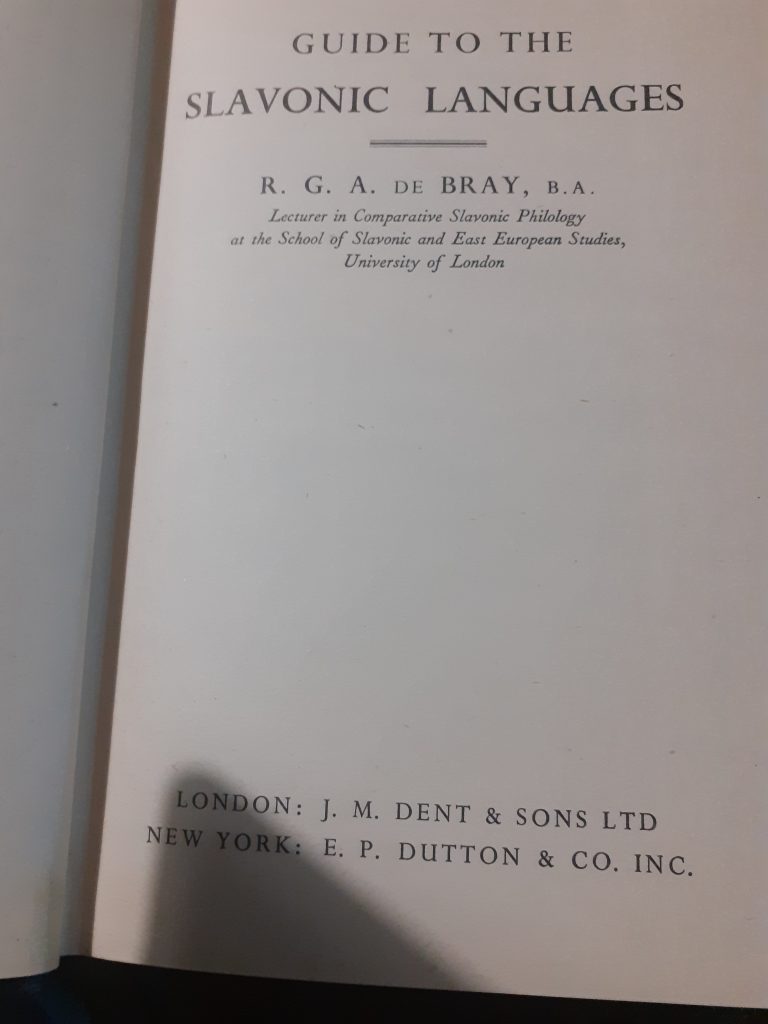 I recently came across a remarkable find: Guide to the Slavonic Languages by R.G.A. DE Bray, a lecturer at the institution I once studied at, though long before my time. Even for someone like myself, who is not a scholar of Slavonic languages, it is a treasure trove. The book resonates on many levels: it speaks of a gentler, more refined era, when scholarship was exacting and the pursuit of knowledge meticulous.
